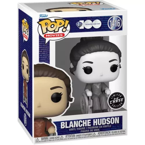 Introducing the Blanche Hudson #1416 Funko POP! figure, a must-have for collectors and fans of classic cinema. Capturing the enigmatic allure of Blanche with her poised expression, this figure stands as a captivating tribute to her iconic role. The Chase Black and White sticker adds a unique vintage touch, heightening its desirability and making it a standout piece in any collection. Crafted meticulously in the signature POP! size, this Funko figure features Blanche Hudson in her memorable outfit, complete with intricate detailing that pays homage to every aspect of her character from "What Ever Happened to Baby Jane?" (1962). The wheelchair and costume design bring an authentic feel to the piece, ensuring it's true to the character's portrayal in the film.