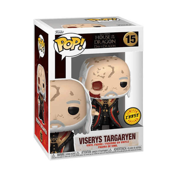 Welcome to the Dance of Dragons! The pursuit of legacy has begun and Pop! Viserys Targaryen must determine the line of succession. Help this king maintain control amidst the claims and quarrels in your Game of Thrones: House of the Dragon collection. Make room for this ruler in your home so he can expand the reach of his reign. There’s a 1 in 6 chance you may find the chase of Pop! Viserys Targaryen without Mask. Vinyl figure is approximately 3.95 or 3.75 in (9.5 cm) tall.